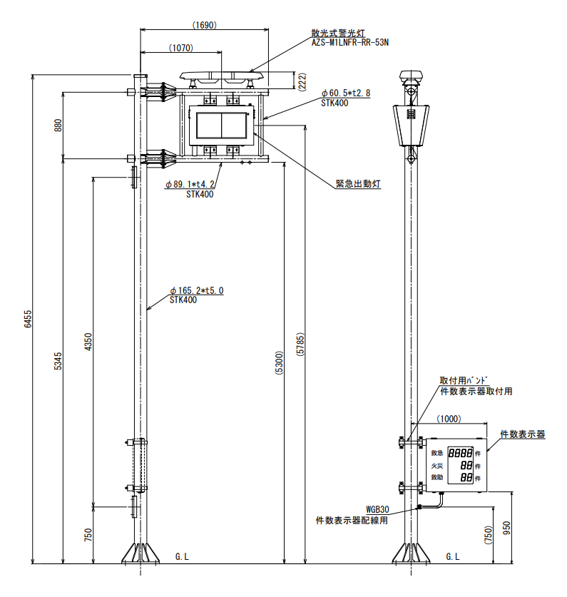 | 表示部 | 16×16ドット320mm角LED(1文字)/3色(赤・緑・橙) |