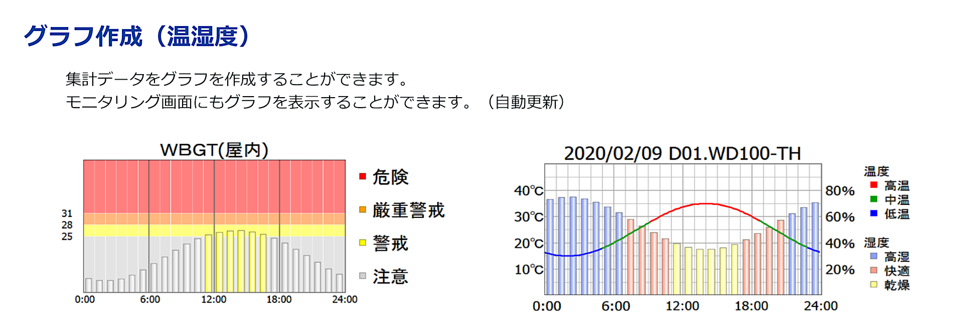 収集した温湿度データは現場の熱中症の危険度を示す具体的な指標になるため、空調機器のご導入における根拠としてご活用頂けます。