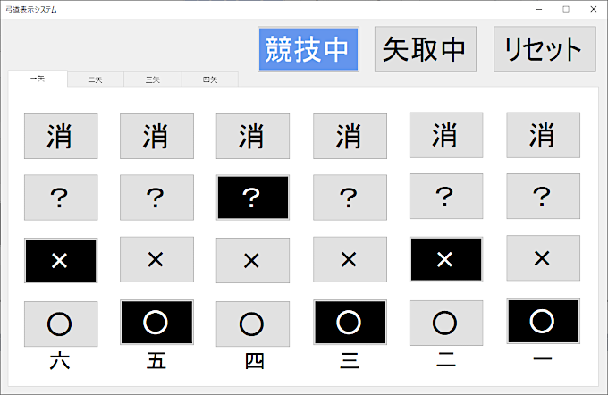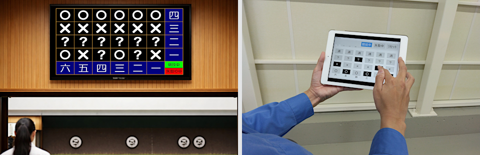 的中結果を「○」/「×」で表示し、判定が微妙なときは「?」を表示します。